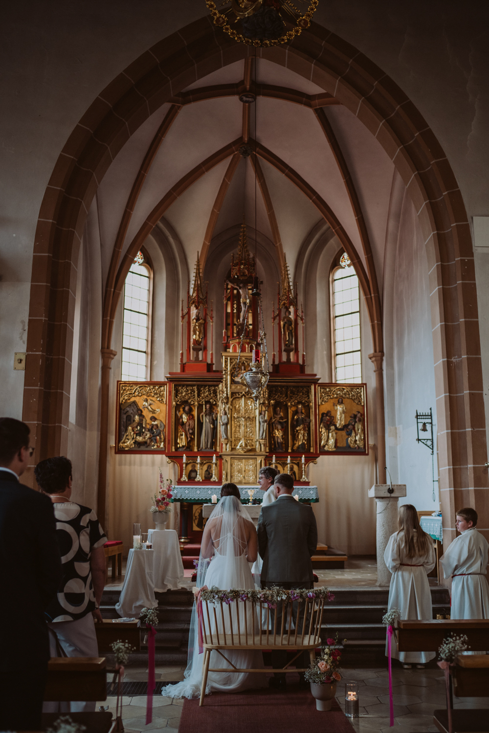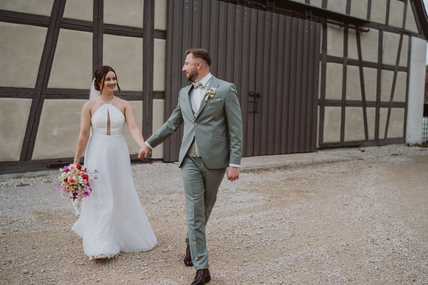 Die kirchliche Trauung in Mitteleschenbach war der wunderschöne Start in diesen besonderen Hochzeitstag. Umgeben von Familie und Freunden haben sich die beiden in der Kirche das Ja-Wort gegeben – ein sehr emotionaler Moment mit vielen strahlenden Gesichtern, ein paar Freudentränen und ganz viel Gefühl.