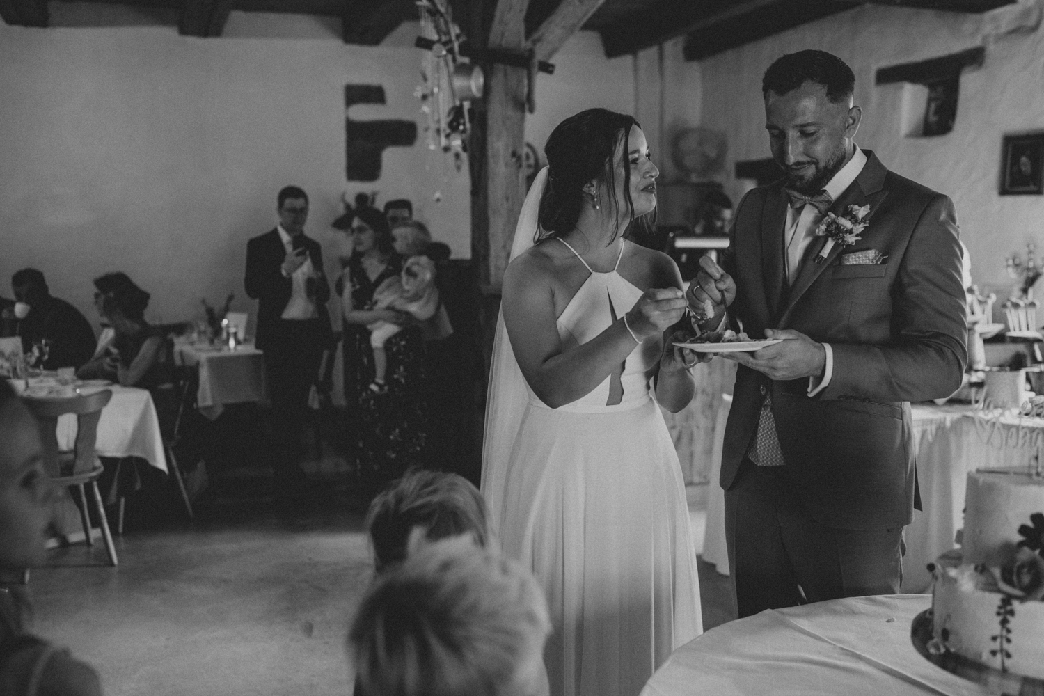 Anschließend wurde in der gemütlichen Scheune in Neuses weitergefeiert. Dort herrschte eine richtig entspannte Stimmung: Es wurde gelacht, angestoßen und einfach zusammen gefeiert. Zwischen all den liebevollen Details, den Gesprächen mit Familie und Freunden und der fröhlichen Atmosphäre sind viele echte, ungestellte Momente entstanden – genau die Augenblicke, die ich an Hochzeiten so liebe festzuhalten. 📷✨
